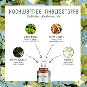 Aufgrund dieser Wichtigkeit – welche unweigerlich mit dem Zustand des Gehirns**, dem Gedächtnis* und den kognitiven Fähigkeiten* einhergeht – haben wir GEDANKENGUT für Sie konzipiert.